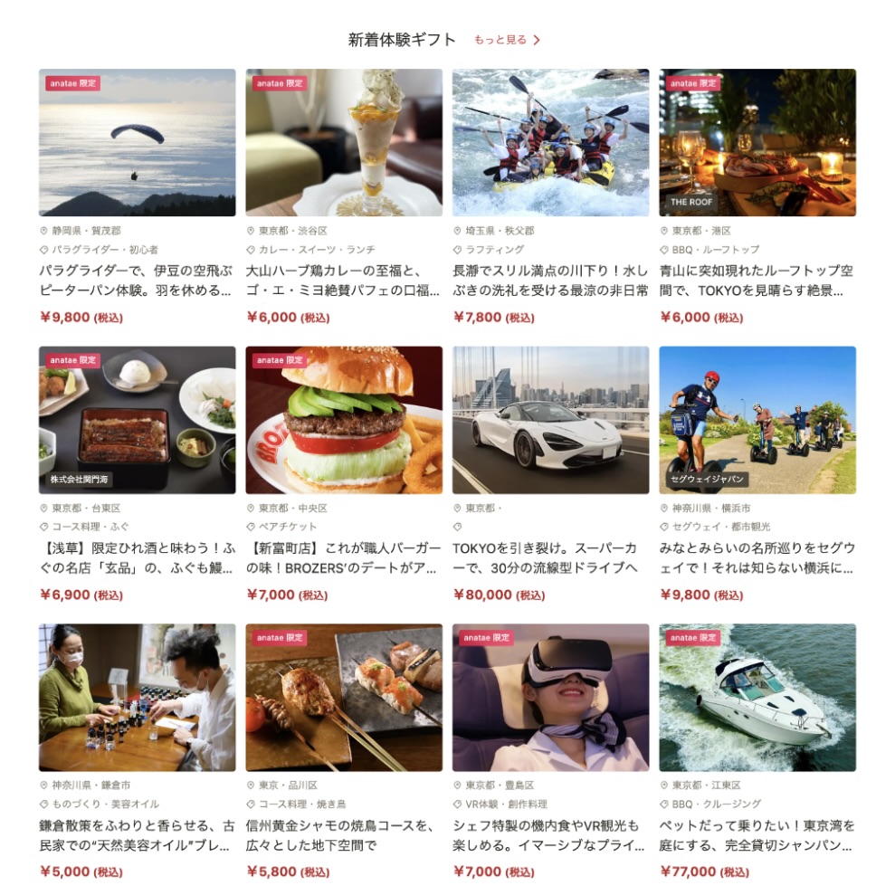 しかし、体験ギフトのマーケットプレイス anatae掲載により新たな市場開拓が見込める理由は、デザインの優れたECサイトだという点に止まりません。