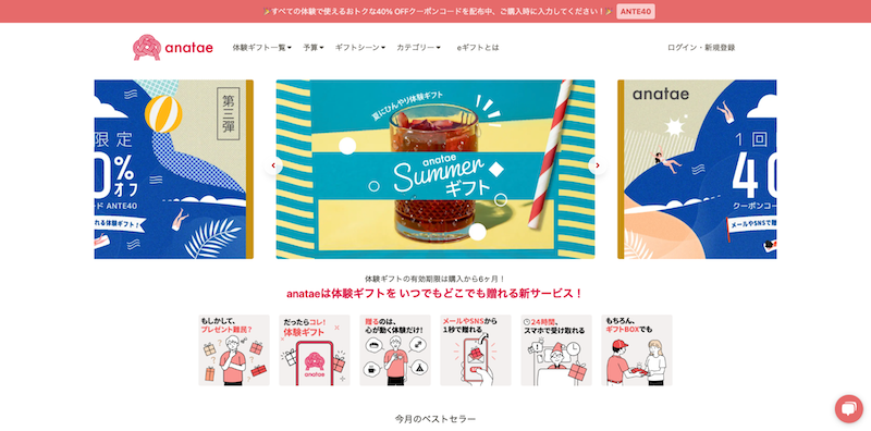 ②anataeによる宣伝。anataeは継続的に、体験ギフトのマーケットプレイスを広告・宣伝しています。その中には、掲載されている体験ギフトを紹介するものも少なくありません。anataeを通じて、自社商品の宣伝機会を得ることができます。