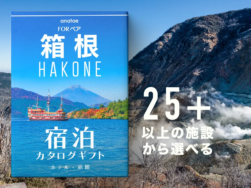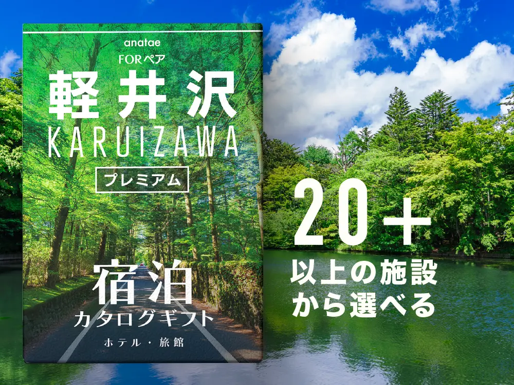 人気の観光地、軽井沢・箱根・熱海から、厳選された25の宿泊施設を選べるペア専用のカタログギフトです。贈られた方がお好きな宿泊施設を選び、2人だけの特別な時間を過ごせます。