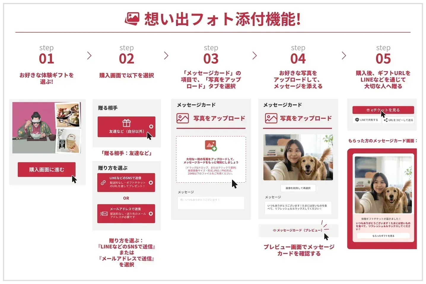 - お好きな写真をアップロードして、メッセージを添える